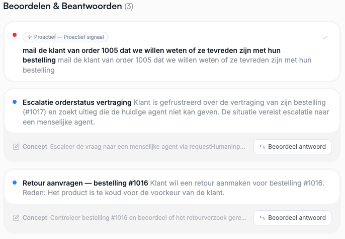 - Gesprekken waar de agent onvoldoende confidence heeft